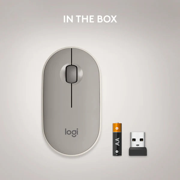 Own your space with Logitech Pebble M350 Pebble Silent Mouse – a modern, slim and silent portable mouse designed for your CU Rated lifestyle. Make a statement with this slim mouse that can easily be scooped up and taken to the cafe or library. Silent clicking and scrolling means you can stay Focused without disturbing those around you. And the Logitech Pebble stays powered for 18 months* on a single AA battery so you don’t have to worry about losing power. Connect the Logitech Pebble the way you want – via either Bluetooth or the USB receiver. The high-precision optical tracking works on most surfaces.